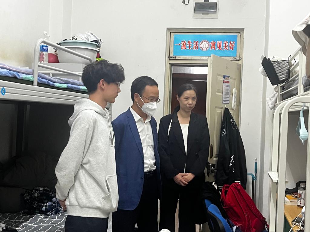 在中秋、国庆双节来临之际,为了让假期留校学生在色情网 欢度佳节、感受家的温暖,9月29日中秋节的下午,色情网 党委书记王利国、色情网 院长王丽颖、辅导员宫瑾老师和辅导员王梦媛老师走进学生公寓慰问在校学生,为同学们送上暖心的节日祝福和诚挚的慰问,并发放中秋月饼,与同学们共话家常、亲切交谈。