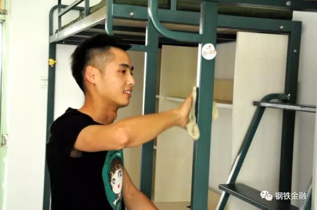 团委学生会的学生干部们来到6舍和15舍为还未开学报道的17级新生打扫寝室卫生。从各自寝室取来了抹布、扫把、簸箕、拖把等卫生工具,团委学生会干部们分工合作,擦床板床架、抹桌子、扫地和拖地,怀揣着对学弟学妹们的期待,力求将寝室打扫得一尘不染。