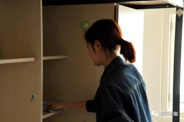 团委学生会干部们有的细心地用抹布清理桌角细缝,有的耐心地将寝室内外门口走廊打扫干净。经过近一小时的清理打扫,新生寝室变得干净整洁。学生会主席团及各部部长在打扫结束后,仔细地检查每一个寝室,以保证为即将到来的新生提供一个干净整洁的寝室环境。