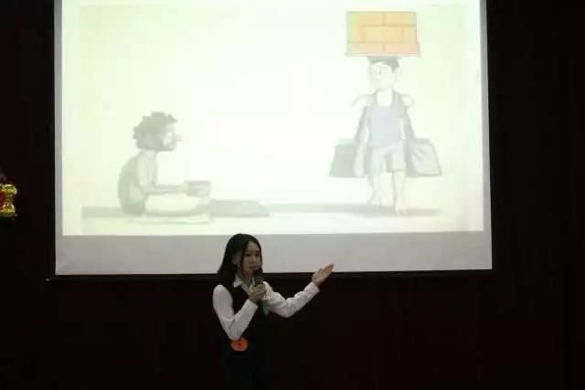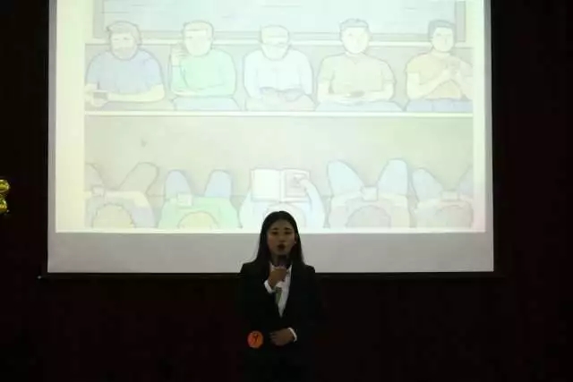 第三项 即兴演讲。参赛者随机抽取即兴演讲题目(图片题视频题音频题),抽到题目后有30秒的思考时间随后开始即兴演讲。参赛者们在台上表现从容,落落大方,由抽取到的题目即兴发挥,表现精彩。