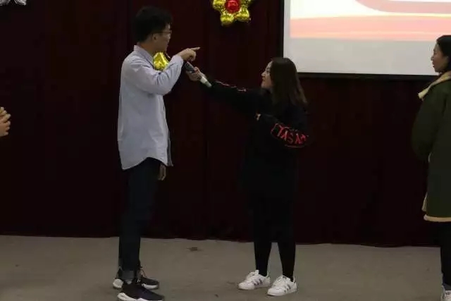 第二项 娱乐环节。在紧张激烈的第一轮演讲后我们迎来了娱乐环节,娱乐环节的主持人是韩添、赵睿雯,游戏缓和了比赛紧张的气氛同时也拉开了即兴演讲的帷幕。