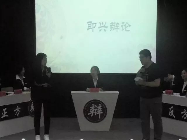 即兴辩论环节,我方抽到的辩题是“大学生就业实行双向选择弊大于利”。现场辩论趣味横生。