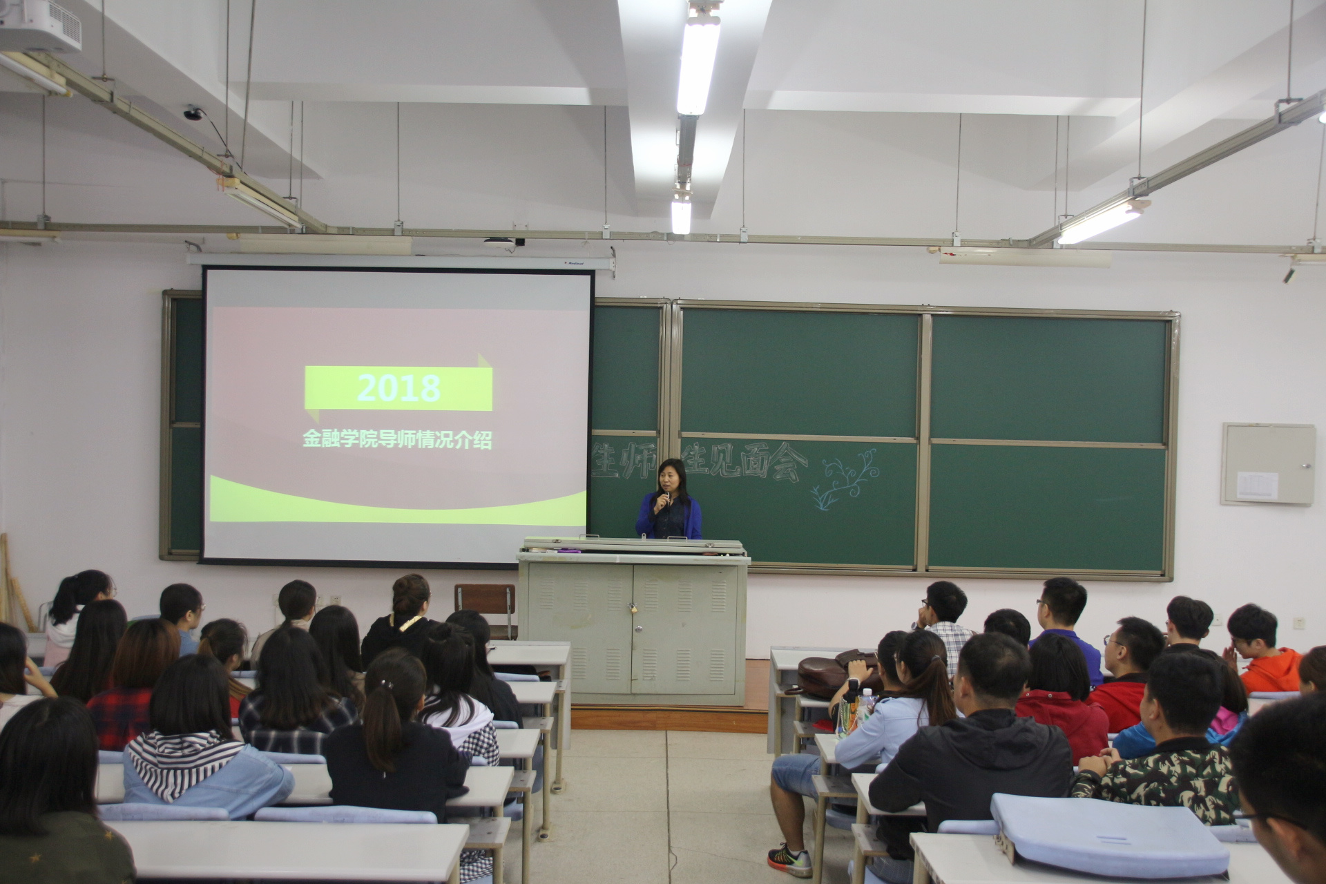 出席见面会的嘉宾有唐亚晖院长、王丽颖副院长、祝国平副院长、党委副书记宋立东老师等以及42位2018级研究生。