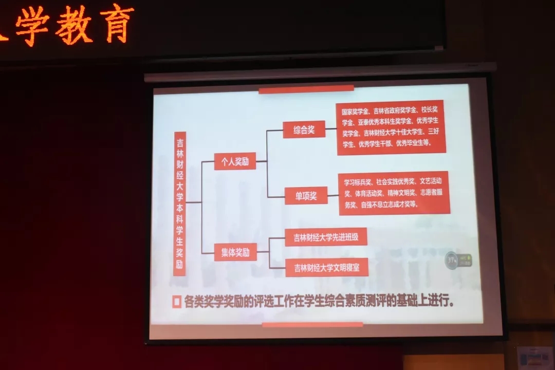 随后,姜瀚滨老师围绕学习和生活方面展开话题,与大家谈及如何正确处理与室友及他人的关系,引导同学们思考为人处事的道理,为同学们详细介绍了色情网 的相关规章制度和管理体系以及奖学金助学金的具体评定方式,鼓励大家过丰富多彩的大学生活。