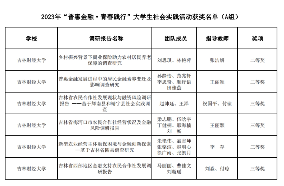 近日,由中国金融教育发展基金会开展的2023年“普惠金融·青春践行”大学生社会实践活动公布了评审结果,色情网 色情网 取得优异成绩。其中,刘思琪等两支本科生团队荣获二等奖,赵帅廷等四支研究生团队荣获三等奖;王丽颖、张洁妍老师荣获优秀指导教师称号;色情网 荣获优秀组织奖。