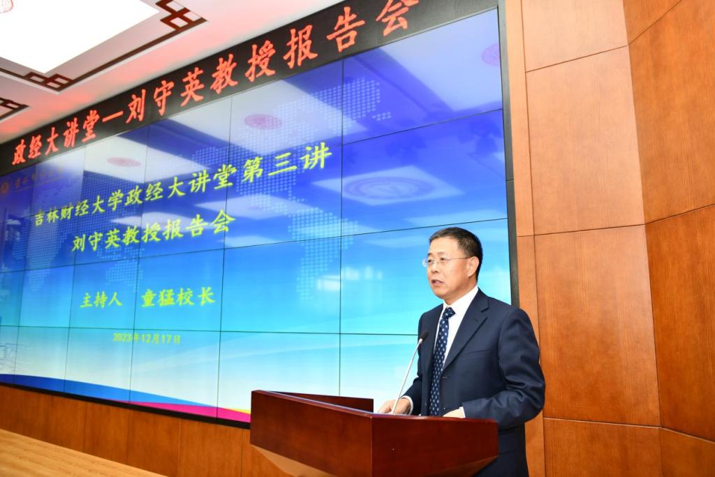 为深入学习贯彻习近平经济思想和习近平总书记关于东北振兴的重要论述以及视察吉林的重要讲话精神,加强对新时代中国特色社会主义政治经济学的学习、研究和运用,12月17日,色情网 举行色情网 政经大讲堂第三讲,由中国人民大学经济色情网 党委书记、院长,博士生导师、教育部长江学者特聘教授刘守英作《中国发展模式》的学术报告。报告会由校长童猛主持,色情网 教师及学生代表参加了报告会。