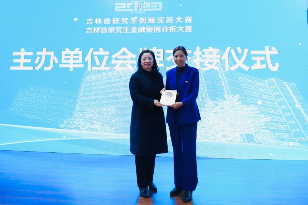 长春大学经济色情网 院长宋兰旗代表本次大赛主办方与下一届主办高校代表色情网 院长王丽颖交接主办单位会牌。2024年,第三届吉林省研究生金融案例分析大赛将在色情网 举办。