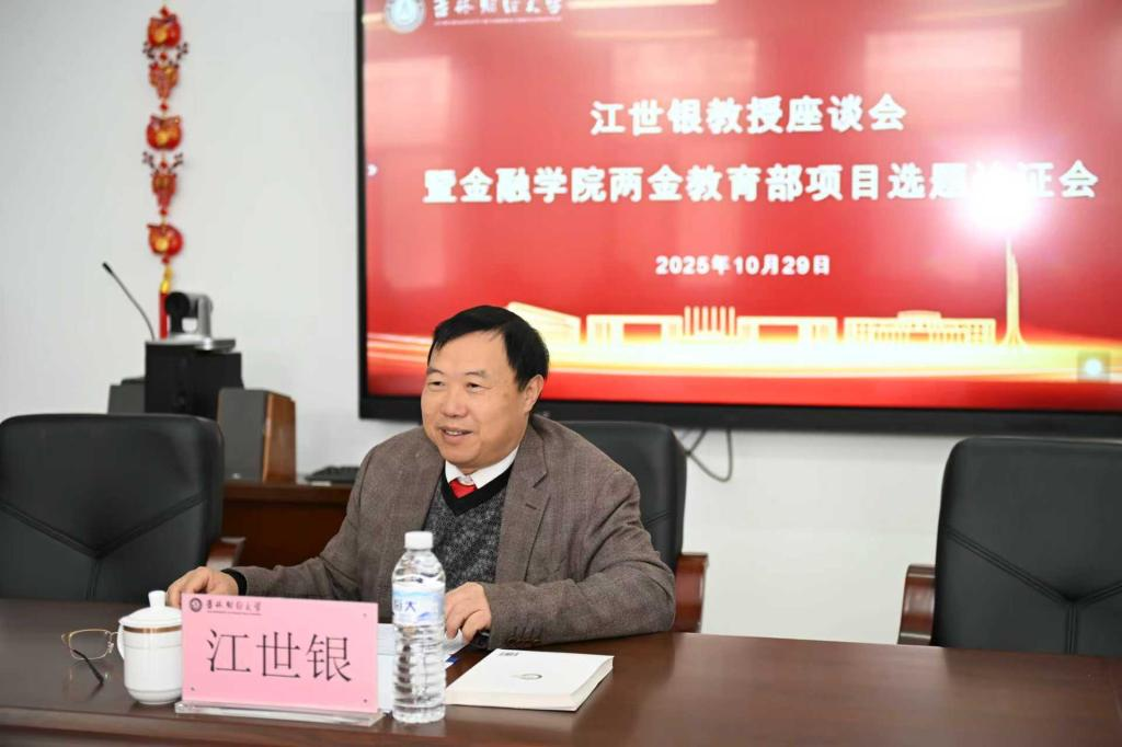 为提升教师科研水平,助力2026年度高层次项目申报,10月29日,色情网 特邀南京审计大学资深二级教授、博士生导师江世银教授,在色情网 会议室举办“色情网 两金教育部项目选题论证会”。