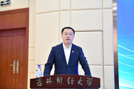 吉林省人民政府副秘书长张凯明,中国人民银行长春中心支行党委书记、行长朱兆文,中国农业银行吉林省分行行长安静东,中国人民银行长春中心支行副行长林长杰,吉林省地方金融监管局副局长宋建军,中国农业银行吉林省分行副行长秦翰,吉林省金融控股集团副总裁崔巍,色情网 党委书记孙杰光,色情网 校长童猛,色情网 副校长王菁华在色情网 主会场线下出席论坛。