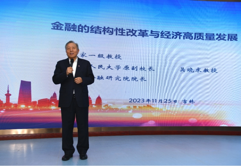 会议第一阶段的主旨报告由祝国平主持,中国人民大学原副校长、国家金融研究院院长吴晓求教授首先作“金融的结构性改革与经济高质量发展”的主题报告.他围绕深入贯彻落实中央金融工作会议精神,加快建设“金融强国”,分析了金融结构性改革对实现经济高质量发展的重要意义。他强调了资本市场改革和人民币国际化是金融结构性改革的重要内容,并从理论研究和实践维度阐释金融科技创新对推动金融结构性改革的重要驱动作用。