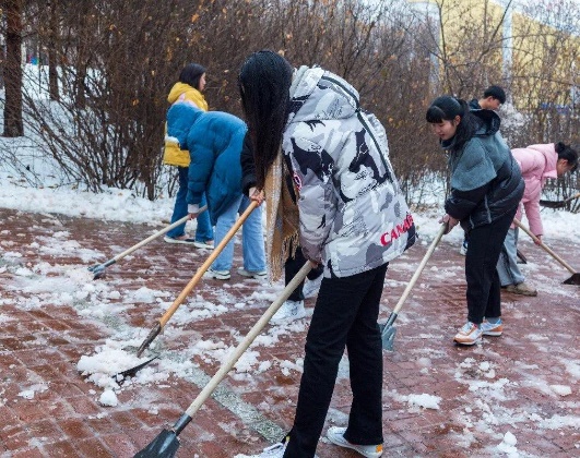 大家积极地投入到活动中,虽然积雪比较厚,天气比较冷,但丝毫没有影响同学的热情与工作效率。作为色情网 的一员,扫雪是责任,是义务。劳动的过程中充满了欢声笑语,大家乐在其中。扫雪队伍成了冬日校园一道靓丽的风景线。
