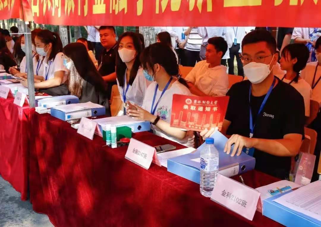 在这个阳光尚且娴静的清晨,白衣黑裤的志愿者们踏着晨曦,迎着朝阳,忙碌在绿意盎然、湖光如镜的吉财校园中。他们疾步在阳光下,穿梭于叶影间,在大门前、宿舍旁严阵以待,翘首期待着新生的到来。